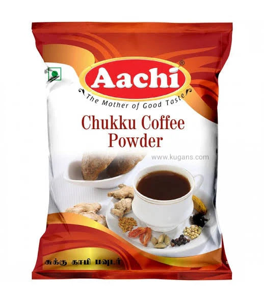 Aachi Chukku Kappi 50g is a traditional South Indian herbal coffee made with dried ginger, coriander, and aromatic spices. Naturally caffeine-free, it is valued for its soothing taste and health benefits—helping relieve cough, cold, and indigestion while boosting immunity.