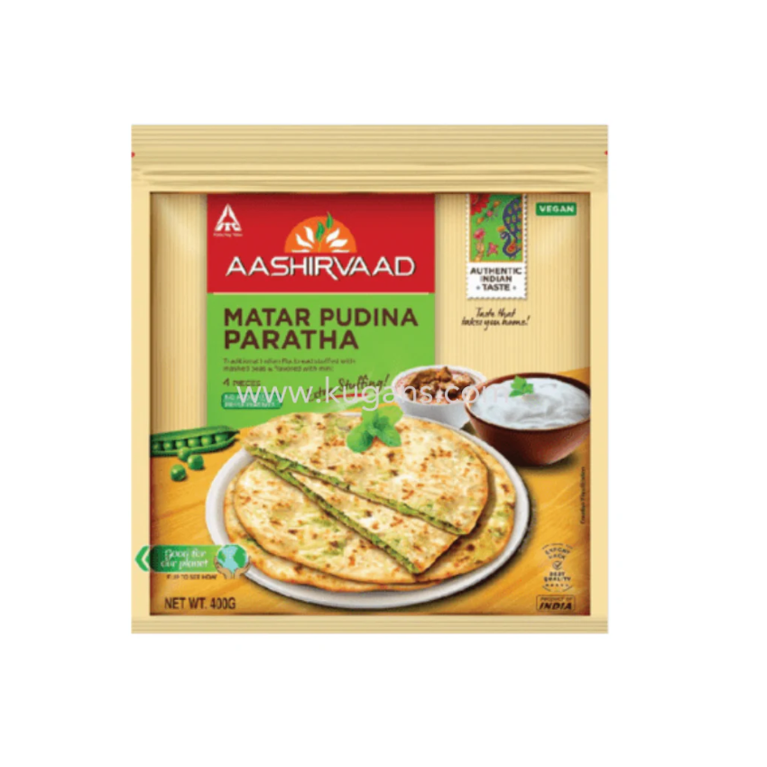 Aashirvaad Matar Pudina Paratha 400g combines the goodness of green peas and refreshing mint in a soft, flavorful paratha. Ready-to-heat, it's a tasty and convenient meal option.