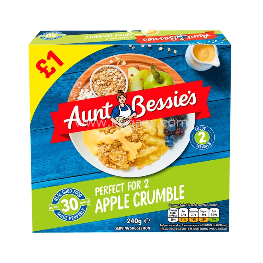 Aunt Bessie’s Apple Crumble 240g is a delicious dessert with sweet apple filling and a crisp, golden crumble topping. Easy to bake and perfect for any occasion.
