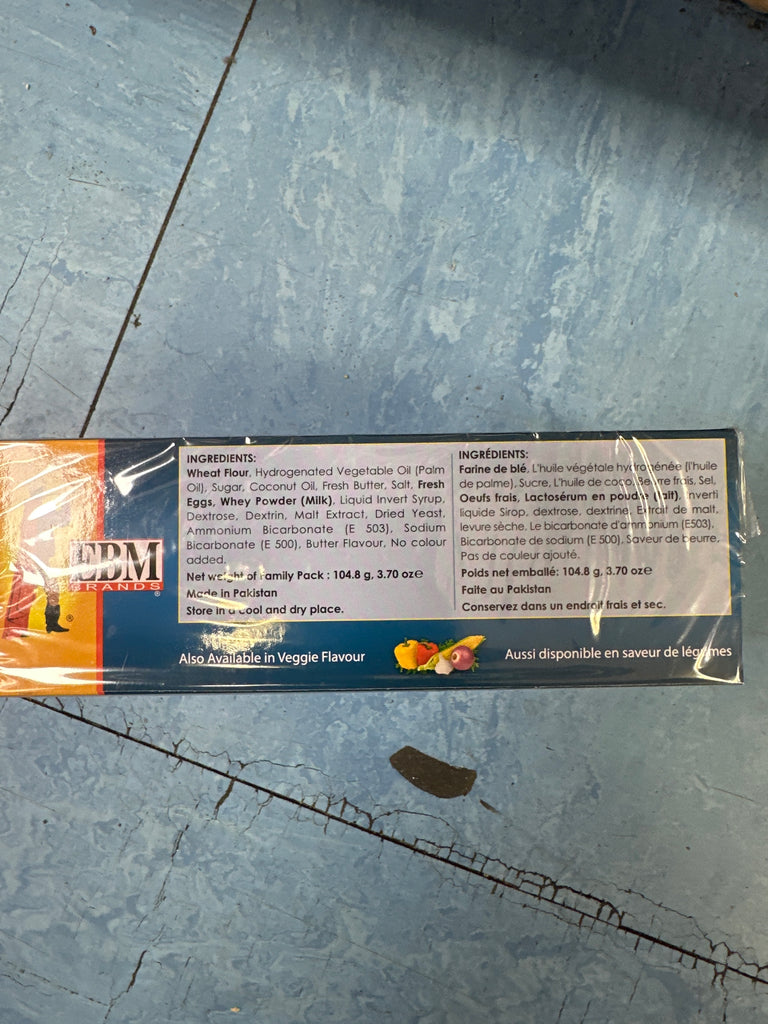The Angel EBM Butter Puff Crackers 105g are a savory snack produced by EBM (English Biscuit Manufacturers), a renowned Pakistani brand known for its wide range of biscuits and crackers.