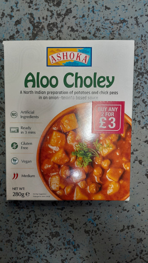 Ashoka Aloo Choley (280g) is a delicious blend of tender potatoes and chickpeas simmered in a flavorful, mildly spiced gravy. Perfectly seasoned with traditional spices, it pairs wonderfully with naan, chapattis, or rice. 100% vegetarian and free from preservatives for a wholesome meal.