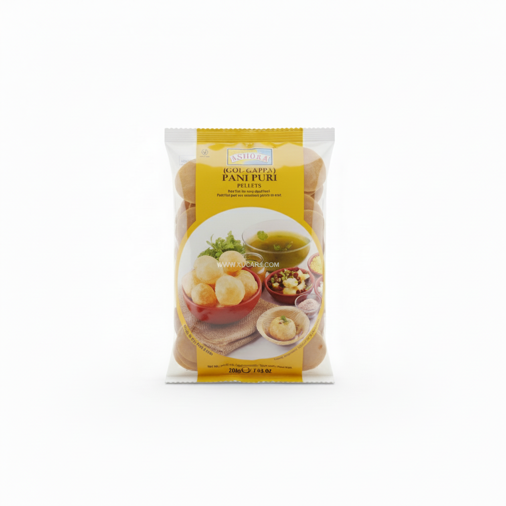 Ashoka (Gol-Gappa) Pani Puri Pellets 200g is a ready-to-fry base that helps you create crisp, light puris for classic street‑style pani puri at home. Heat oil to medium-high, slide in a few pellets at a time, and fry for a few seconds until they puff and turn golden. Drain well, allow to cool slightly, then crack the top and fill with mashed potatoes, cooked chickpeas, onions, and sev. Finish with tangy mint or tamarind pani and serve immediately for the best crunch and flavour.