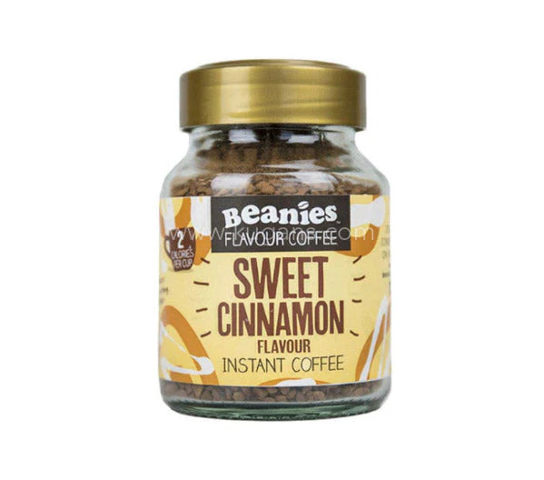 Beanies Sweet Cinnamon Instant Coffee 50g delivers the warm, comforting taste of cinnamon buns in every sip. This sugar-free, low-calorie blend combines smooth freeze-dried coffee with sweet and spicy cinnamon notes for a cozy treat.