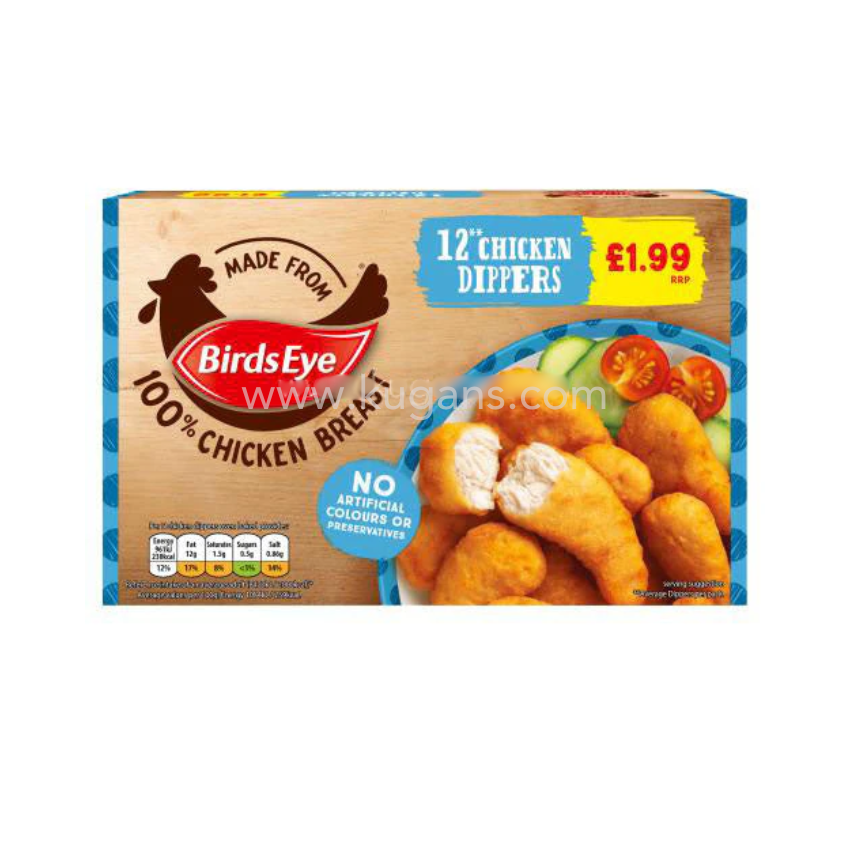 Birds Eye Chicken Dippers 220g are bite-sized pieces of tender chicken coated in a crispy breadcrumb. Perfect for snacks, kids' meals, or quick dinners.