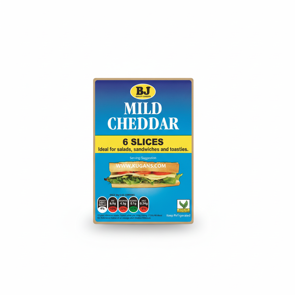 BJ Mild Cheddar Cheese 6 Slices brings creamy, mellow flavour in convenient ready-to-use slices for quick meals. Crafted from cows’ milk, these pale yellow slices melt smoothly and deliver a gentle cheddar aroma and taste, ideal for the whole family. For use, layer a slice between bread with your favourite fillings for an instant sandwich, or butter the outside of the bread and toast in a sandwich press or pan until golden and the cheese is melted. You can also top burgers, wraps, and omelettes; the slices soften and bind ingredients for easy, satisfying results.