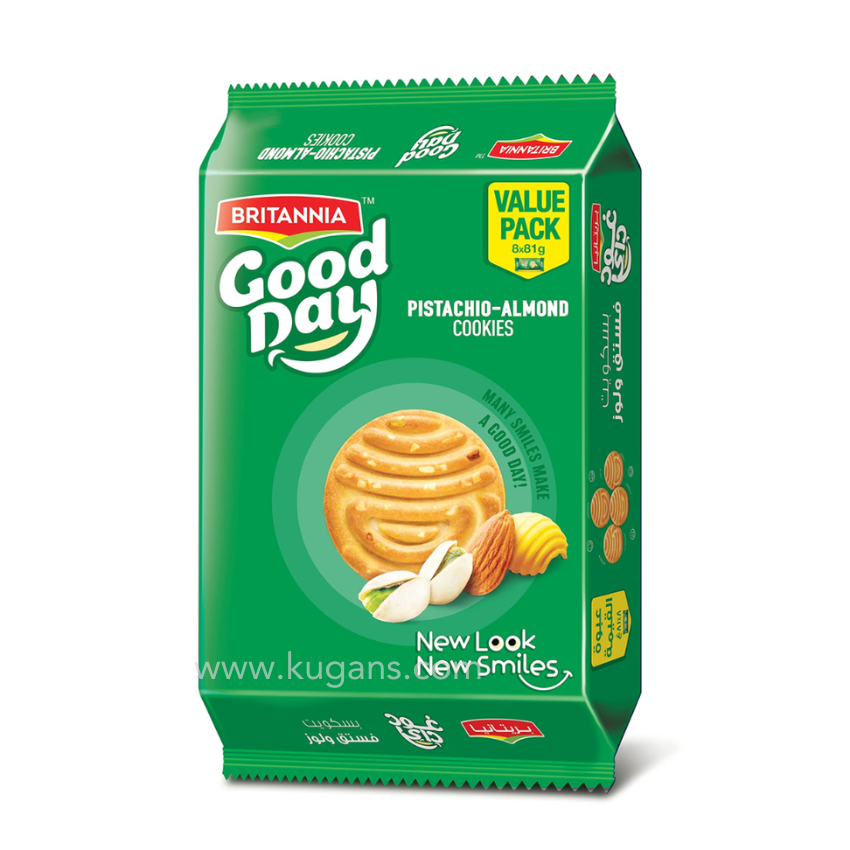 Indulge in the rich and nutty flavor of Britannia Good Day Pistachio & Almond Cookies – a premium selection of crisp, buttery cookies generously sprinkled with crunchy pistachio and almond bits.