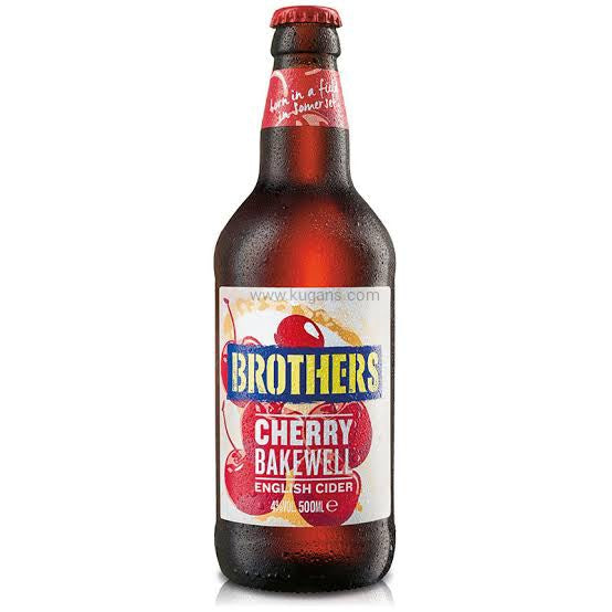Brothers Cherry Bakewell Cider is a fruit flavored cider made by brothers cider, a brand known for creating unique, refreshing ciders