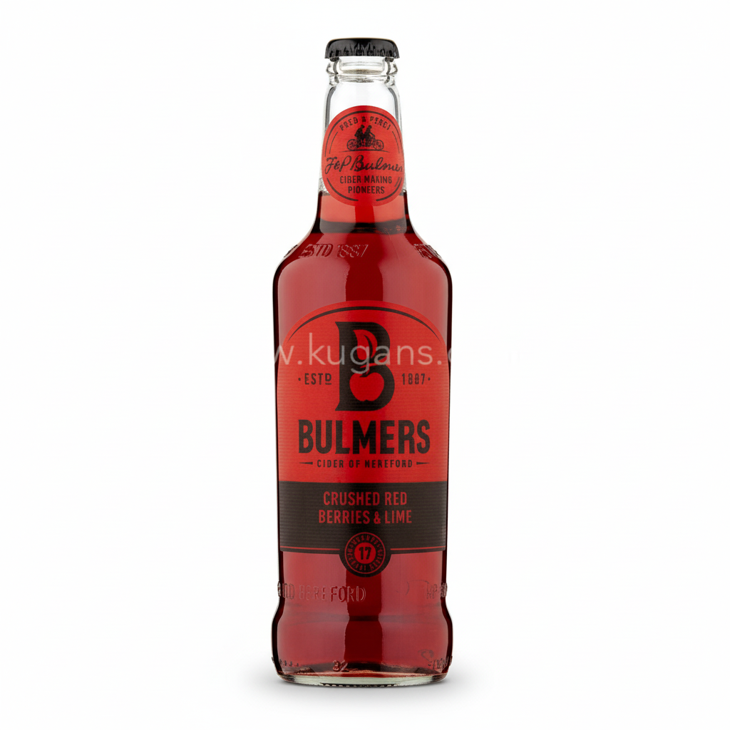 Bulmers Crushed Red Berries & Lime Cider in a 500 ml glass bottle offers a bright fruit cider profile with red berries and lime. For customers aged 18+ only. Drinking is Injurious to health. Best served chilled for a refreshing drink. Presented in a convenient 500 ml pack.