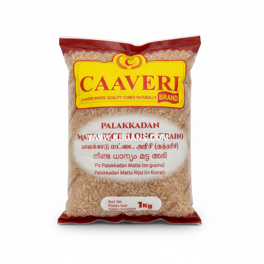 Caaveri Palakkad Matta Rice 1kg is a premium variety of parboiled red rice known for its rich flavor, earthy aroma, and high nutritional value. Popular in South Indian cuisine, especially Kerala, it pairs perfectly with curries and traditional meals, offering a wholesome and authentic dining experience.