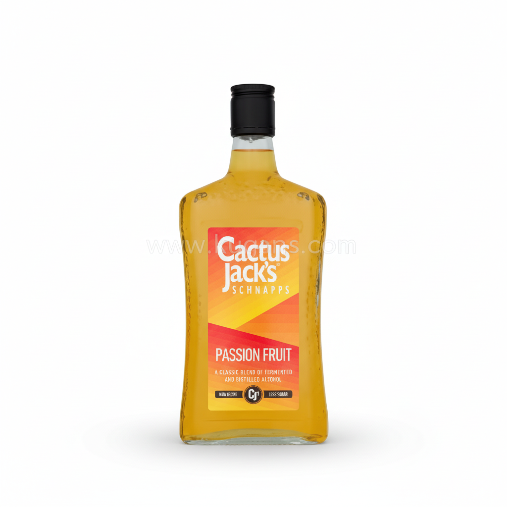 Cactus Jacks Schnapps Passion Fruit is a passion fruit schnapps liqueur. It features a classic blend of fermented and distilled alcohol with a new recipe and less sugar. For customers aged 18+ only. Drinking is Injurious to health. Supplied in a 50cl bottle.