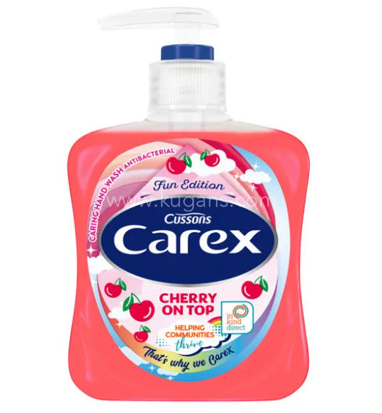 The Carex Cherry Hand Wash 250ml features a sweet cherry fragrance that is designed to leave your hands smelling fresh and fruity. It contains a unique blend of moisturizing ingredients that help to hydrate and protect the skin, leaving it feeling soft and smooth.