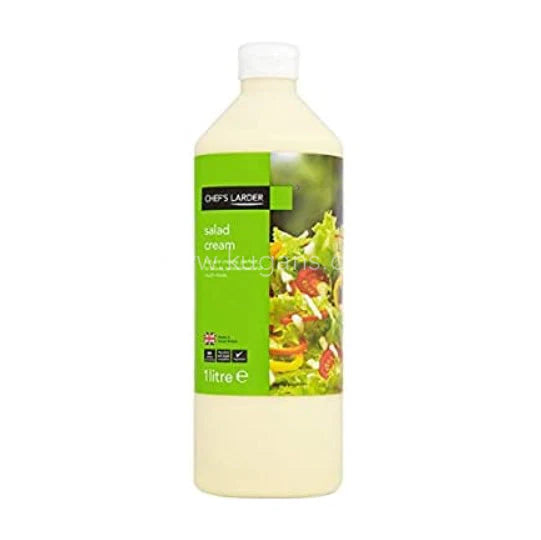 Chef’s Larder Salad Cream is a creamy, tangy condiment that brings a zesty kick to salads, sandwiches, and all your favourite sides. This 1-litre bottle is ideal for home kitchens, foodservice, or bulk use. It’s smooth, rich, and perfect for dressing veggies, adding flavour to wraps, or mixing into potato salads.