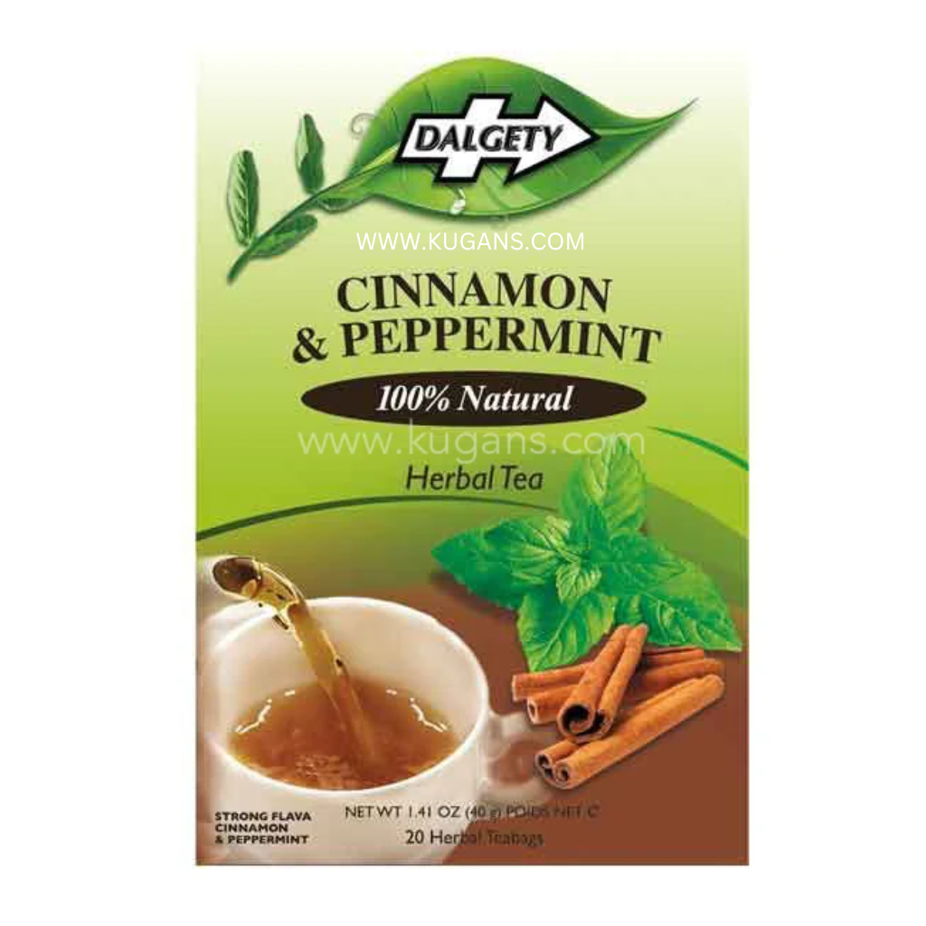 Dalgety Cinnamon & Peppermint Tea 40g combines the warming spice of cinnamon with the refreshing coolness of peppermint. A soothing and invigorating blend, perfect for relaxation or digestion support.