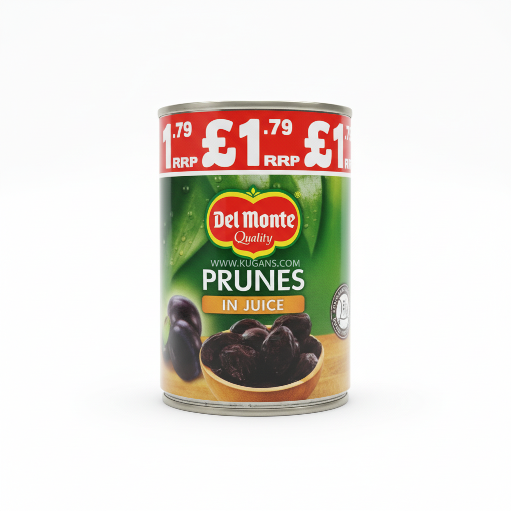 Del Monte Prunes In Juice is a ready-to-eat canned fruit dessert offering soft, dark prunes immersed in their own sweet juice. Enjoy them straight from the can, chill before serving for a refreshing treat, or spoon over yogurt and breakfast bowls. To use, open the can carefully, pour out the contents, and drain or retain the juice as preferred; serve cold, or warm the fruit and juice gently if using in puddings or baking. The natural fruit content makes it a versatile ingredient for everyday desserts and quick snacking.