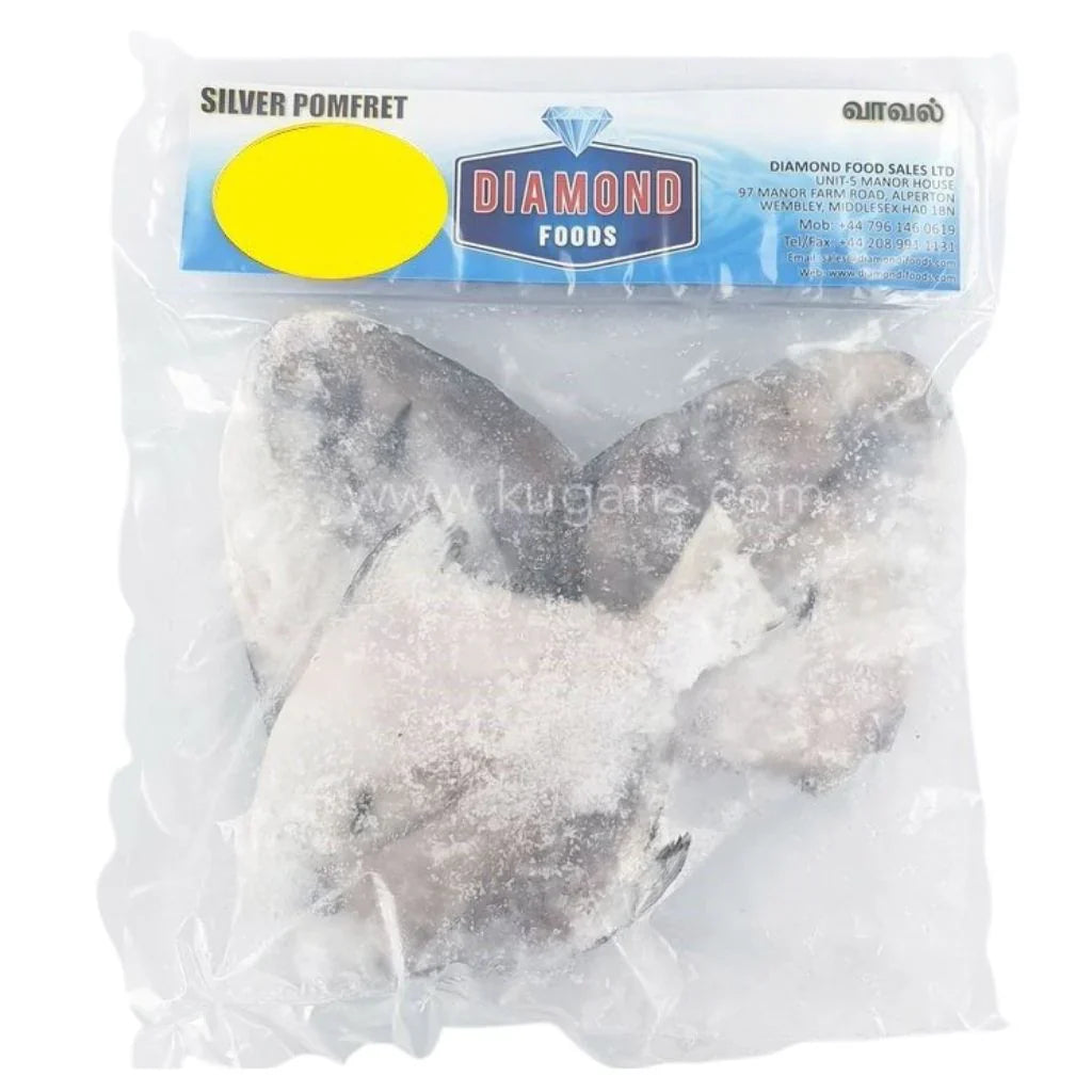 Premium-grade silver pomfret, individually quick frozen to preserve taste and texture. High in protein and Omega-3 fatty acids. Ideal for grilling, frying, or steaming. Cleaned and ready to cook. No additives or preservatives.
