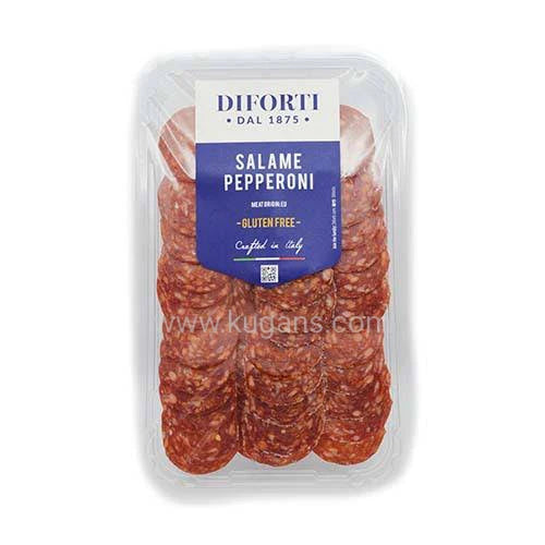 This 80g pack of Diforti Salame Pepperoni features thinly sliced, spicy Italian salami made from premium pork cuts. Seasoned with a blend of spices and spicy pepper extract, it delivers a bold, zesty flavor with a satisfying texture. Ideal as a topping for pizzas, sandwiches, or as part of an antipasti platter.