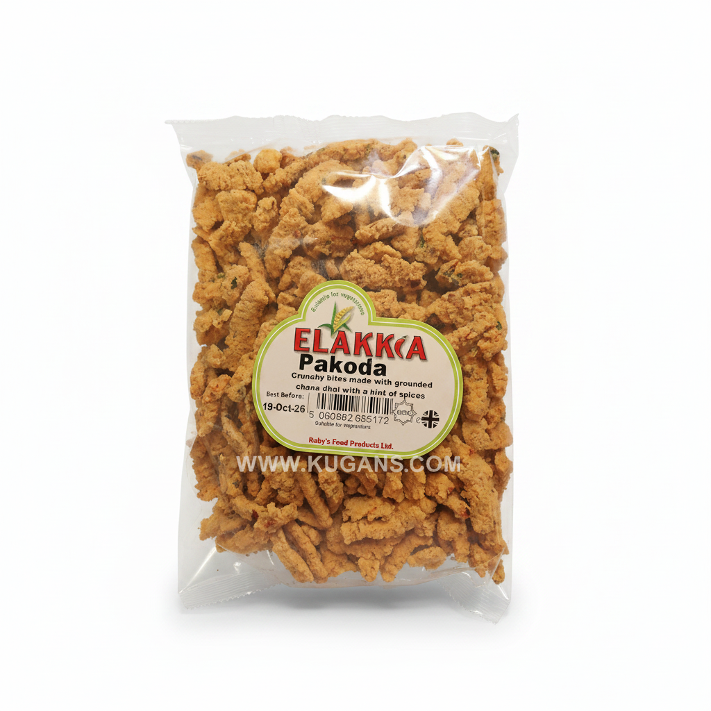 This 450 g pack of Elakkia Pakoda is a crunchy, savory South Indian snack made from gram flour, spices, and herbs. Perfect for tea-time, parties, or casual snacking, it delivers a flavorful and crisp experience. Vegetarian-friendly and gluten-free, making it an ideal treat for all ages.