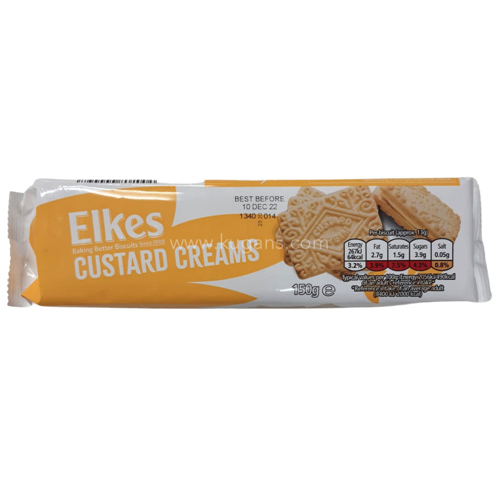 Elkes Custard Creams 150g - Creamy and Classic Biscuits. Enjoy the nostalgic taste. Treat yourself today