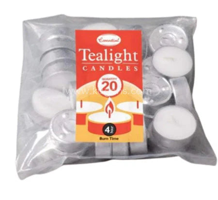 This pack of 20 Essential Tealight Candles is known for its clean, long-lasting burn and compact design, perfect for creating a warm and inviting ambiance. Ideal for home décor, events, or relaxing evenings, these tealights provide a safe and convenient way to add soft lighting to any space.