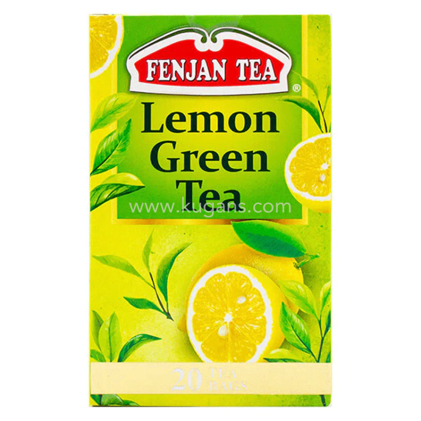 Fenjan Lemon Green Tea is a refreshing fusion of vibrant green tea leaves and zesty lemon flavor, presented in a convenient box containing 20 individually wrapped tea bags.