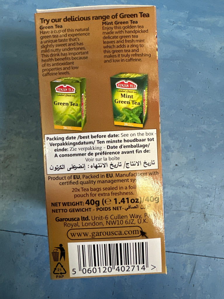 Enjoy a warm, aromatic blend with Fenjan Cinnamon & Rooibos Tea. This 20-piece pack combines the rich, earthy flavor of rooibos with the sweet spice of cinnamon, offering a soothing and caffeine-free tea experience perfect for relaxation.