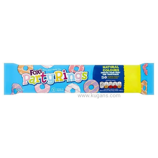 FOXS PARTY RINGS, Colorful and delicious biscuits perfect for parties and gatherings.