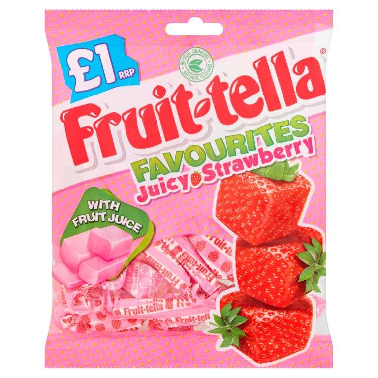 Fruitella Strawberry 135G made with real fruit juice, packed with our juiciest strawberry, orange and lemon flavours.