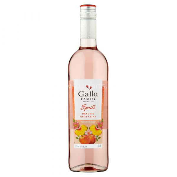 Gallo Peach & Nectarine 75cl is a fruity and refreshing white wine made by the Gallo Family Vineyards, a well-known winery based in California. The wine is a blend of Chardonnay and Muscat grapes, which are known for their fruity and aromatic qualities. The wine has a light, crisp, and refreshing taste, with flavors of juicy peaches and ripe nectarines. It has a hint of sweetness that balances well with its bright acidity, making it a perfect wine for warm weather and outdoor gatherings.