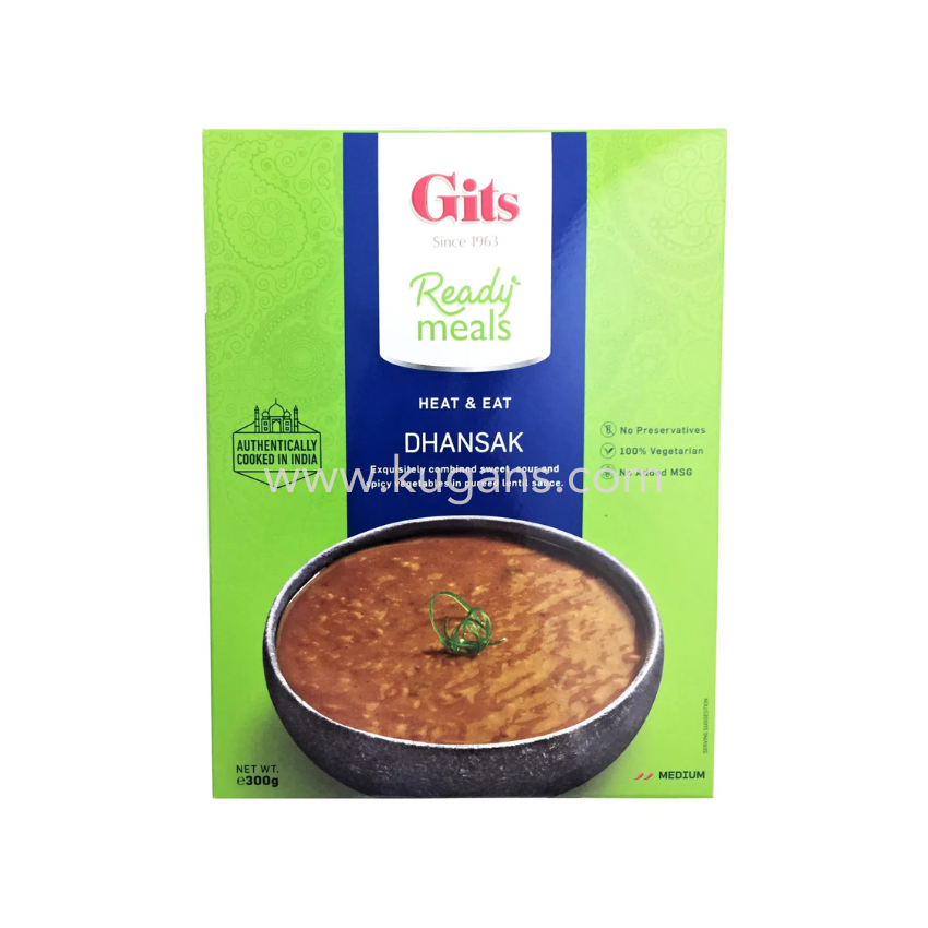 Gits is a brand that offers various ready-to-cook products, and Dhansak is a popular dish in Indian cuisine, often made with lentils, vegetables, and meat (usually chicken or mutton), flavored with spices.