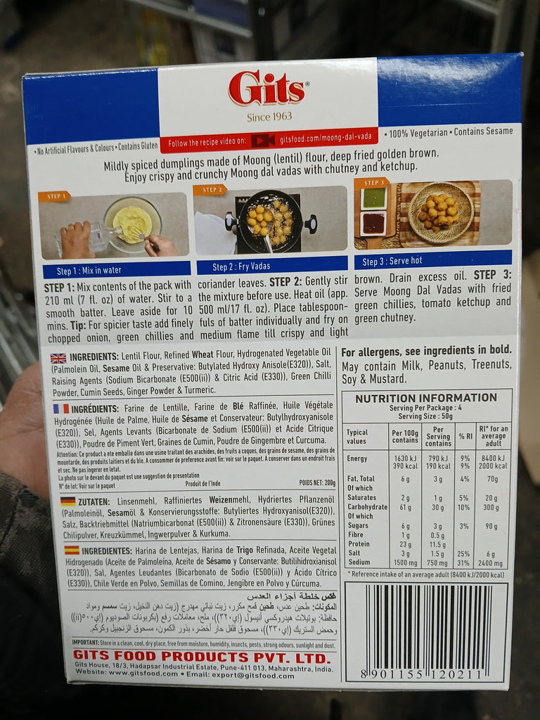 Gits Moong Dal Vada 200g. Enjoy crispy and flavorful lentil fritters for a delightful snack.