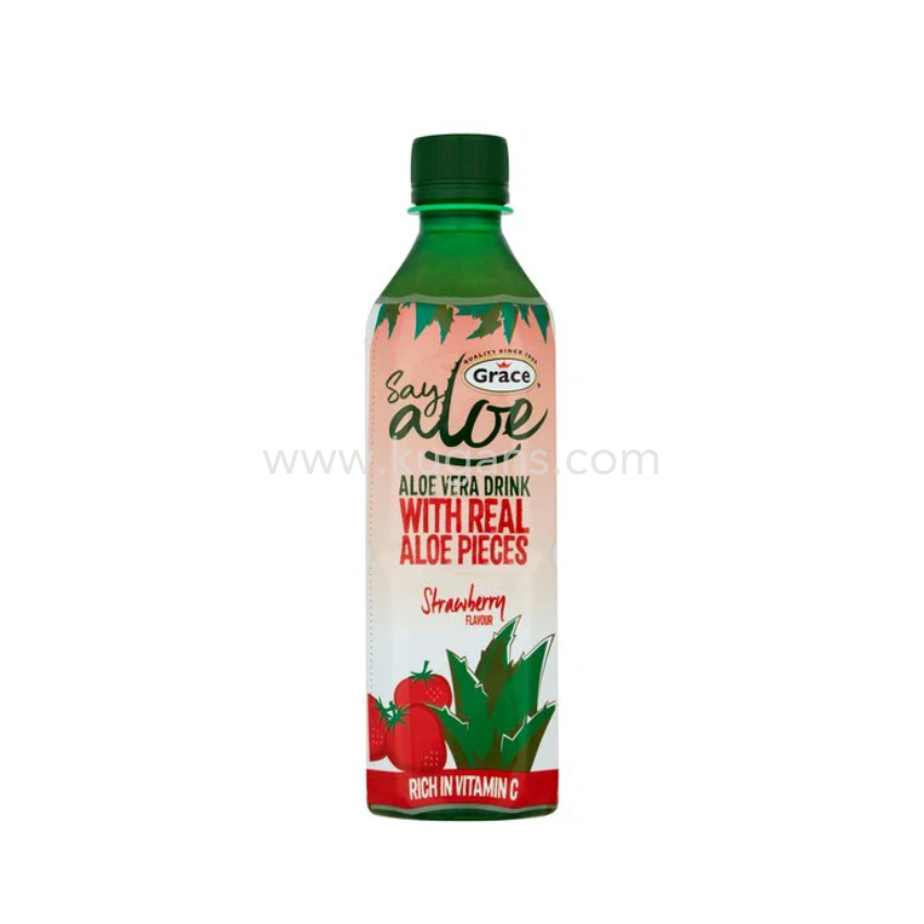 Grace Aloe Vera Strawberry Drink is a refreshing beverage that combines real aloe vera pieces with natural strawberry flavor, offering a unique texture and taste.