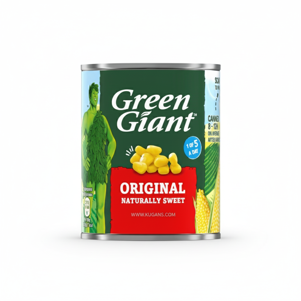 Green Giant Sweet Corn Original Naturally Sweet brings tender, golden kernels conveniently packed in a can for quick meals and sides. Enjoy its naturally sweet taste and bright colour in minutes. To serve hot, open the can, drain, and heat gently in a saucepan for 2–3 minutes without boiling, or microwave in a covered bowl for 1–2 minutes; stir and season as desired. It’s equally delicious served cold in salads, salsas, and wraps, adding sweetness and crunch to everyday dishes.