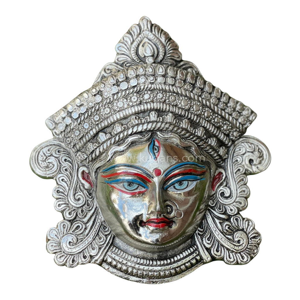 Silver Metal Goddess Durga Enamel Painted Wall Hanging can be utilized for the purpose of prayers, meditation and ritualistic offerings.