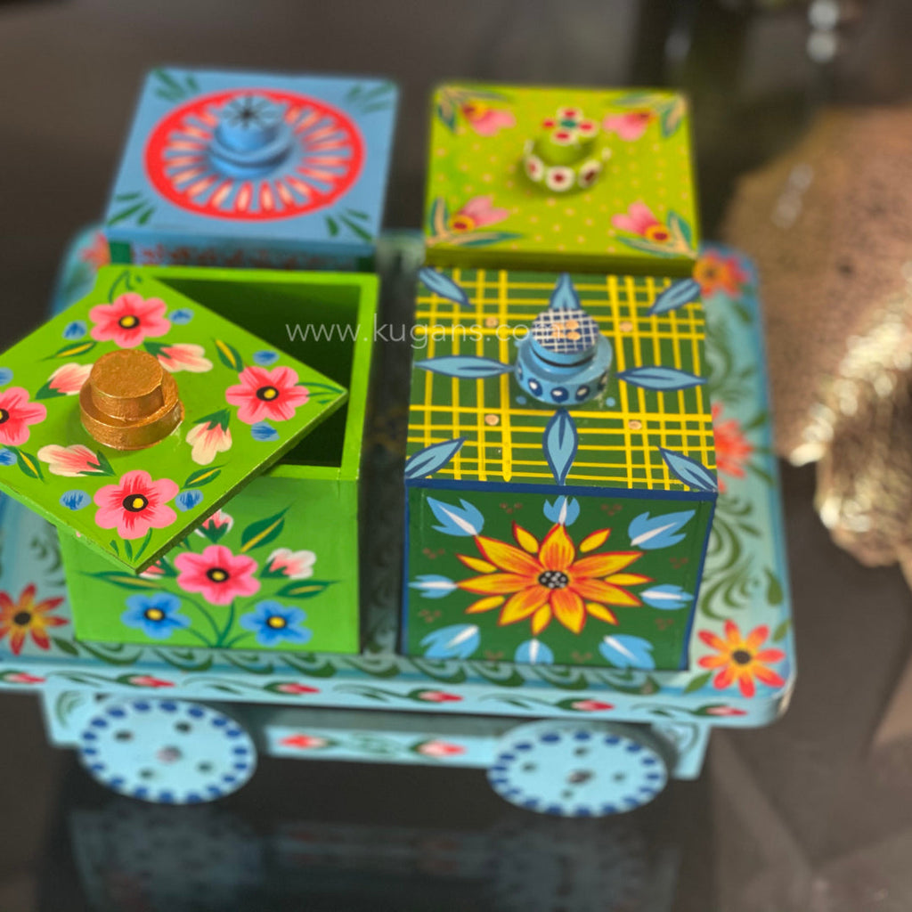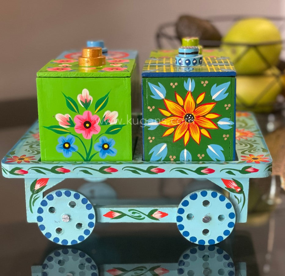 Spice Jar with Cart - Hand painted is an easy choice to store spices to decorate your dining table, and is a beautiful gift to present on various occasions.