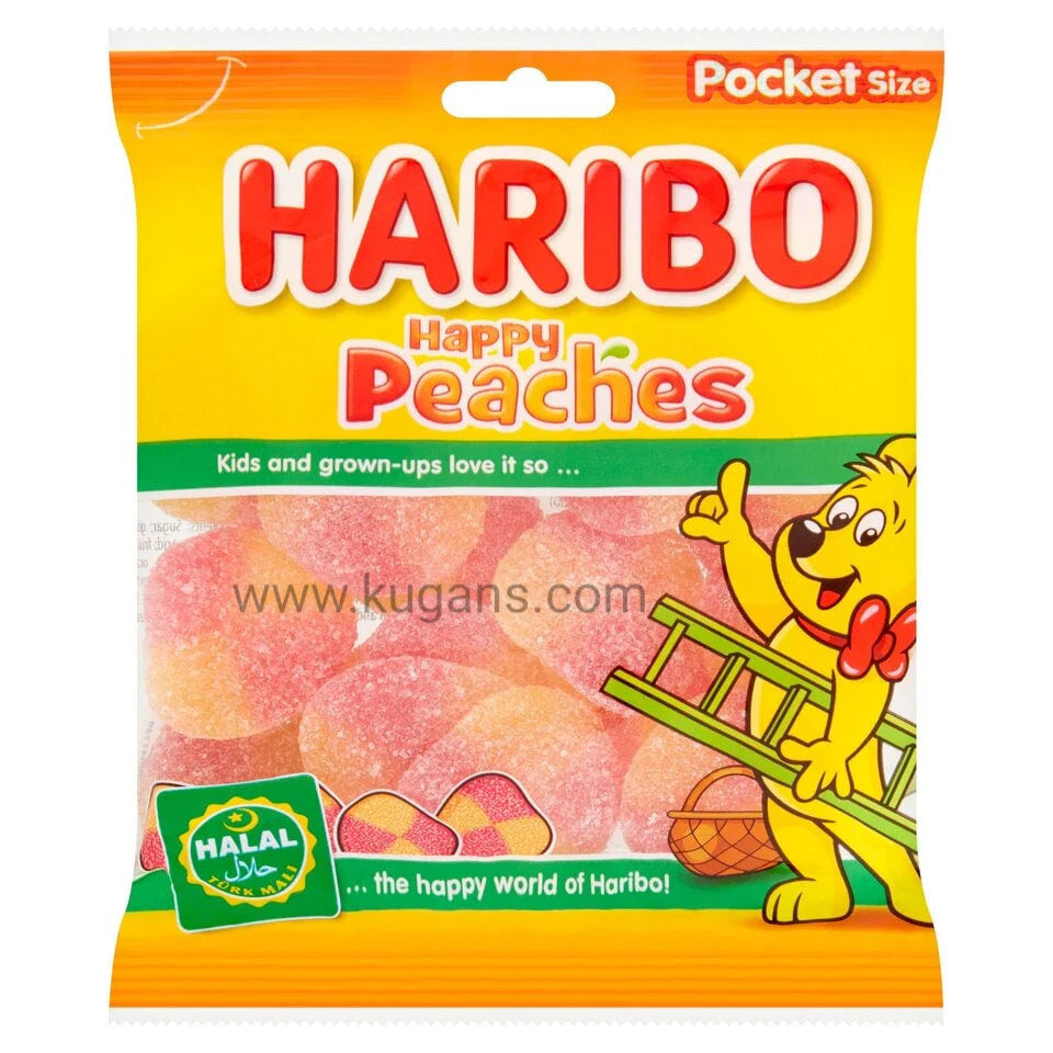 Haribo Peaches are soft, peach‑shaped gummy candies coated in a light sugary shell. They offer a juicy peach flavor with a velvety chewy interior and a slightly granulated outer texture—evoking summer in every bite Reddit +14 HARIBO +14 Piccantino Online Shop International +14 .
