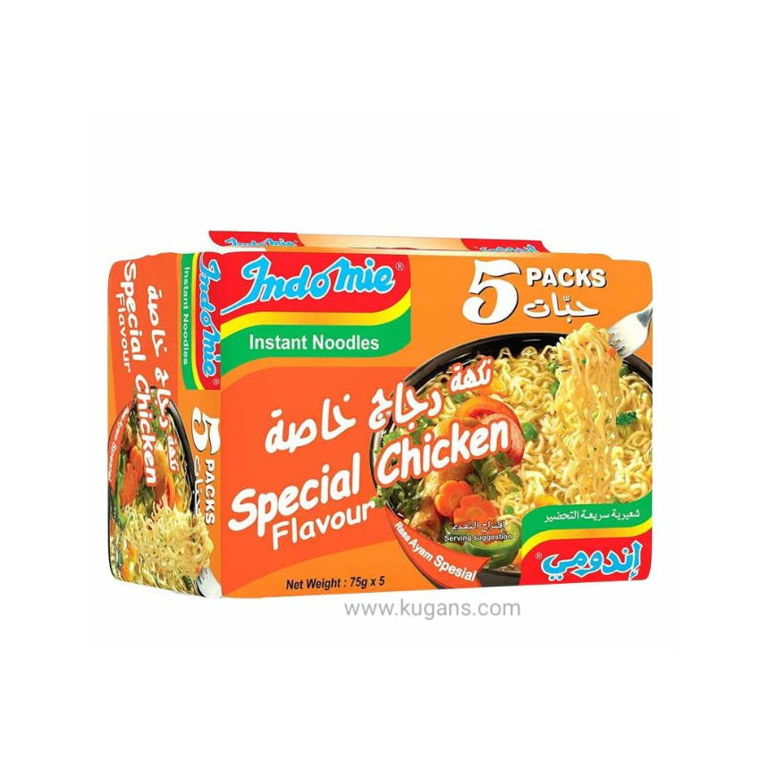 Indomie Special Chicken Flavour Instant Noodles are available in a 375g multipack, typically containing five individual 75g packets.