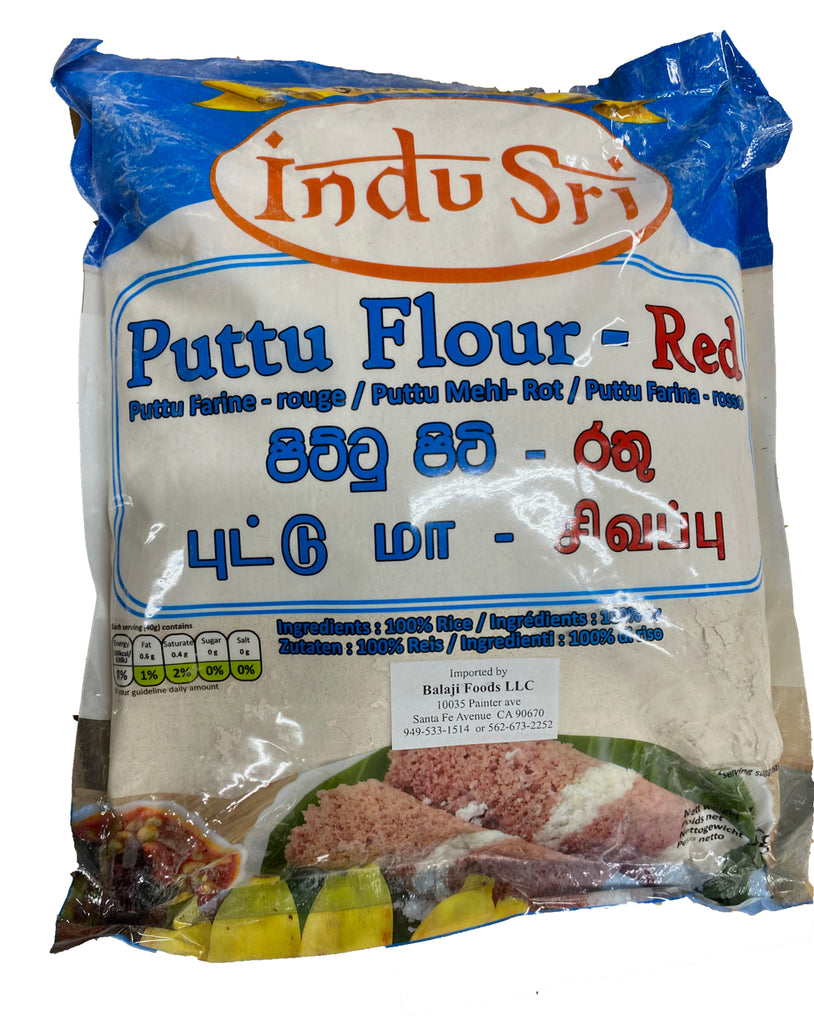 Indu Sri Puttu Flour Red (1kg) is a type of rice flour specifically used to make Puttu, a popular Sri Lankan and South Indian breakfast dish. Puttu is a steamed rice cake that's typically served with coconut milk, curry, or sugar and often enjoyed with savory or sweet accompaniments.