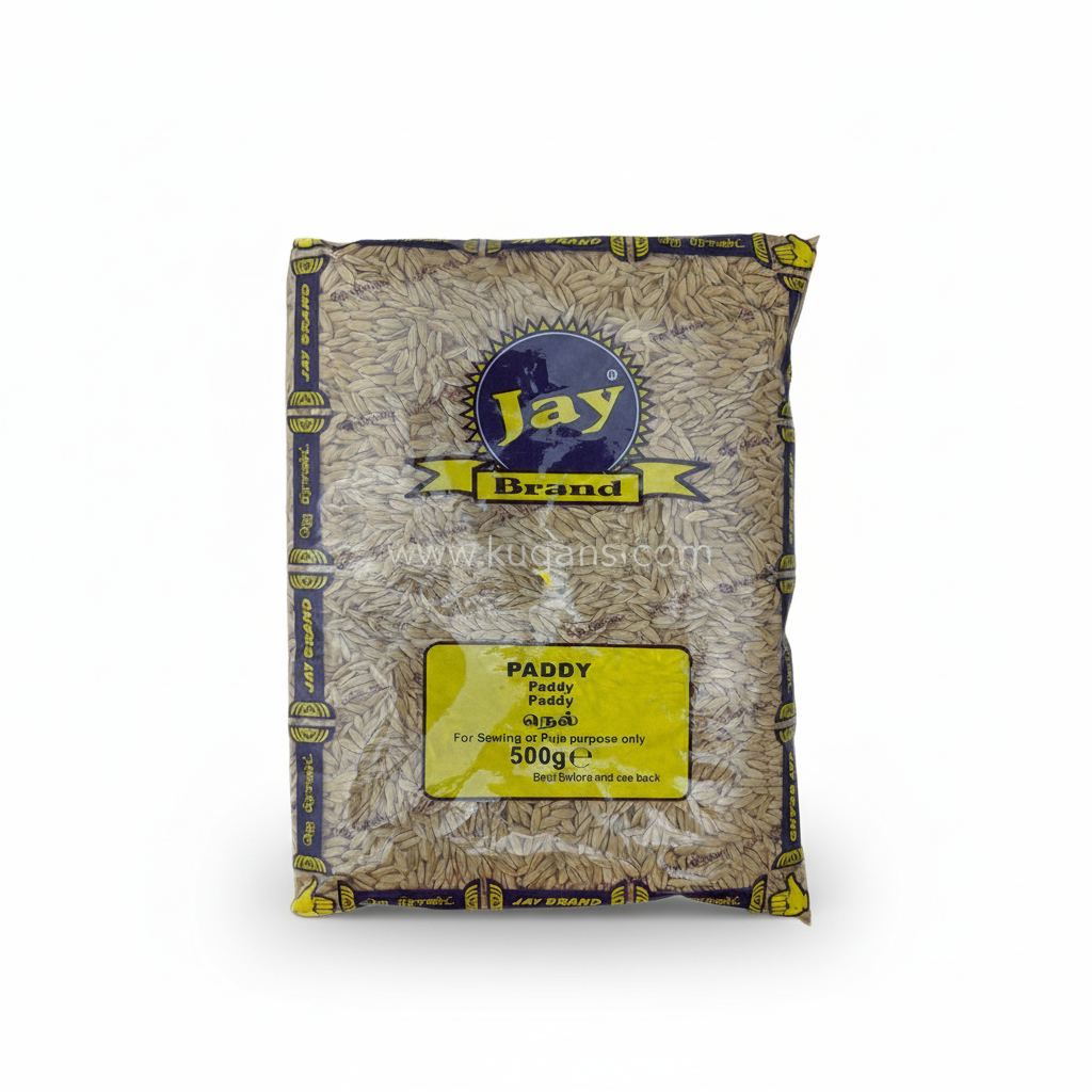 Jay Brand Paddy 500g is whole, unhusked rice intended for non-food use such as sowing or religious rituals. The clean, intact grains are suitable for ceremonial offerings, craft or decor in traditional functions, and seed purposes. Usage guidance: for puja, present a clean handful of grains on a plate or bowl as part of the ritual; for sowing, select healthy grains, prepare moist soil, and distribute evenly at shallow depth, then water lightly. This item is not for consumption. For Sowing or Puja purpose only.