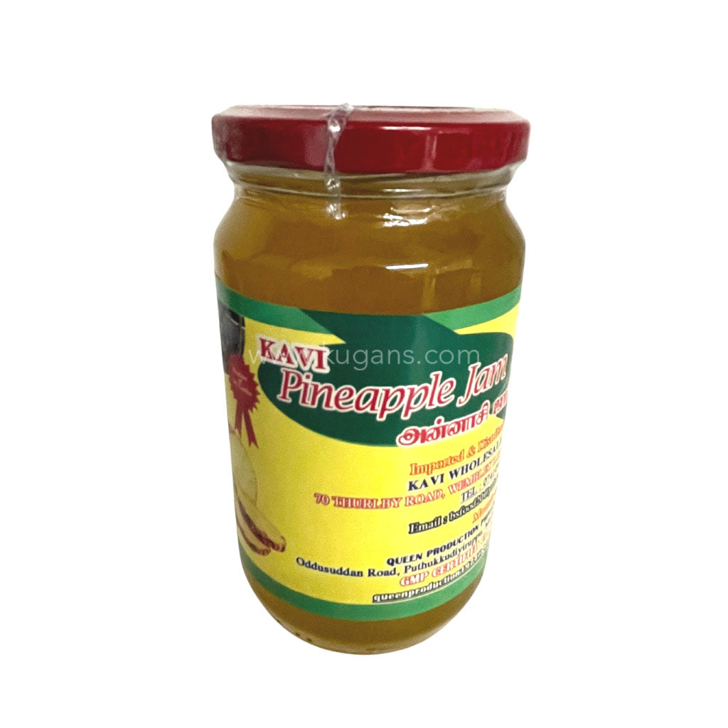 Kavi Pineapple Jam (450 g) delivers a tropical burst crafted from 36 % real pineapple and natural ingredients. With its sweet-tart balance and convenient size, it enhances everything from morning toast to gourmet recipes.