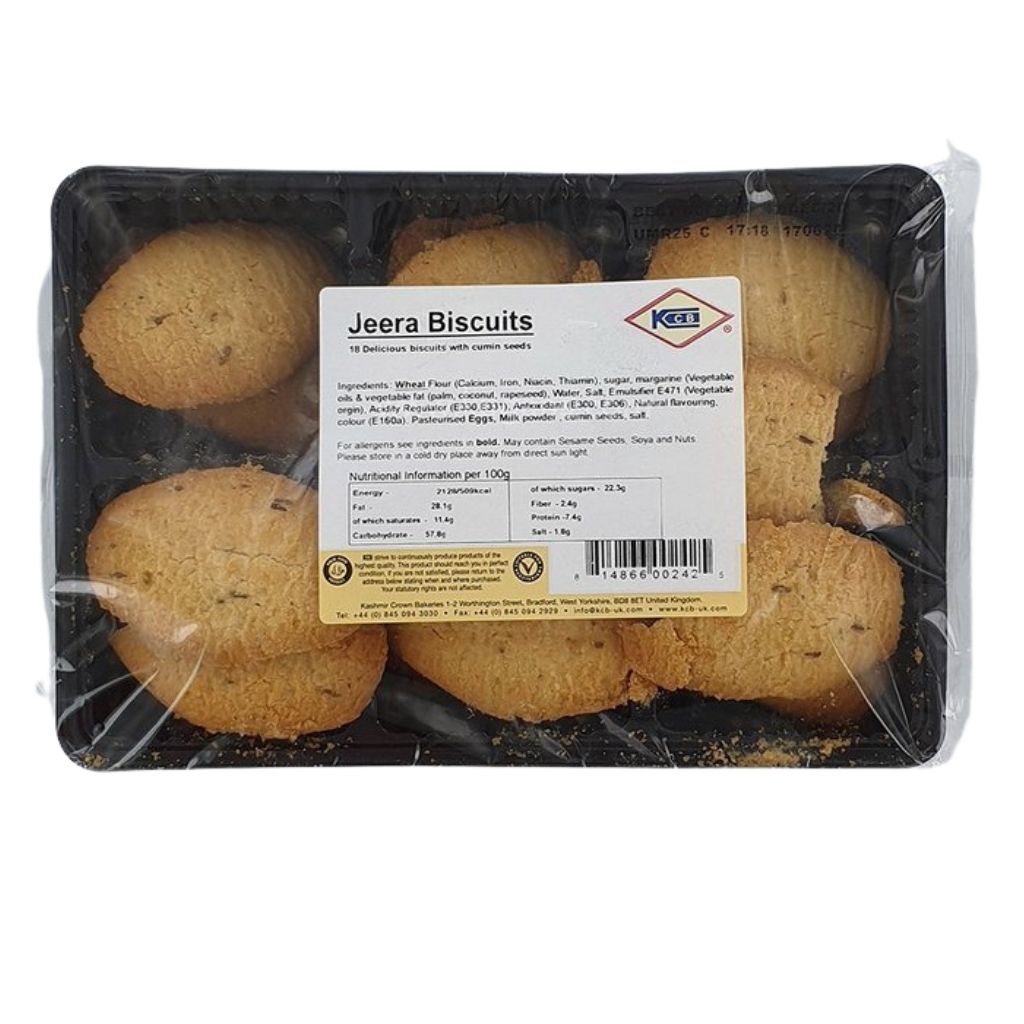 KCB Salted Jeera Biscuits (18‑pack) are eggless, crisp wheat biscuits studded with roasted cumin and light salt. With ~90 kcal per piece, they offer a flavorful snack experience—perfect for tea-time or travel, blending savory, nutty, and salty notes in each bite..