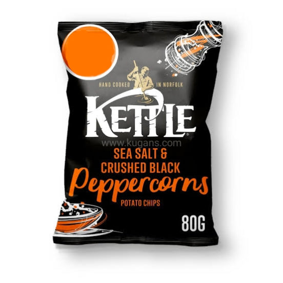 Kettle Chips Sea Salt & Pepper are crispy, hand-cooked potato chips seasoned with a classic combination of sea salt and black pepper for a bold, savory flavor. The 80 g bag is ideal for snacking on its own or sharing with friends.