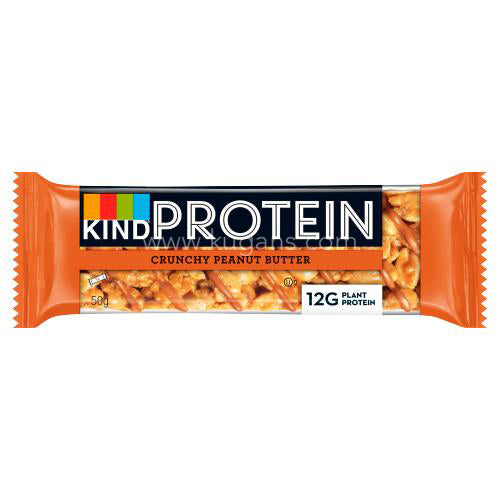 The Kind Crunchy Peanut Butter Protein Bar (50 g) offers a prime balance of taste and nutrition: 12 g of protein from real nuts, gluten-free status, and only 7 g sugar.