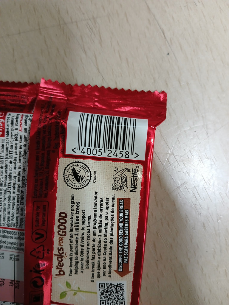 Made by KitKat from Nestlé, this vegetarian-marked bar is a versatile addition to home snacks, office pick‑me‑ups, and sharing occasions. Use it to top sundaes, crush into milkshakes, or include in simple baking recipes for extra chocolatey crunch. The compact 42g size makes portioning easy when you want a light indulgence or to share. Treat yourself or a friend and enjoy a reliably delightful break—order the KitKat Chocolate Wafer Bar 42g for a convenient, tasty pick‑me‑up.