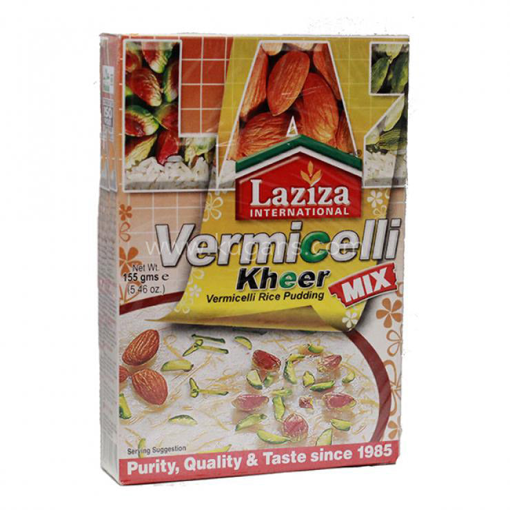 Lazizia Vermicelli Kheer Mix is a delicious rice pudding dessert. With no artificial flavours or preservatives. 100% natural ingredients. Suitable for vegetarians.