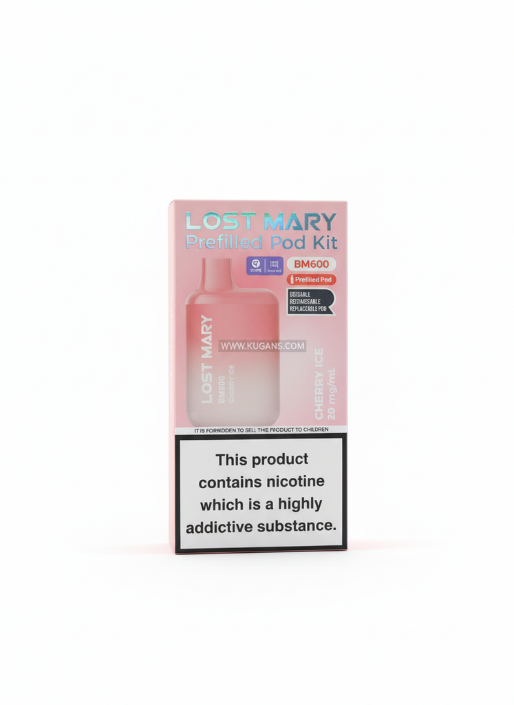 This 600ml bottle of Lost Mary Cherry Ice e-liquid delivers a bold cherry flavor with a refreshing icy finish for a smooth and invigorating vaping experience. Designed for use with compatible vape devices, it provides consistent flavor and satisfaction.