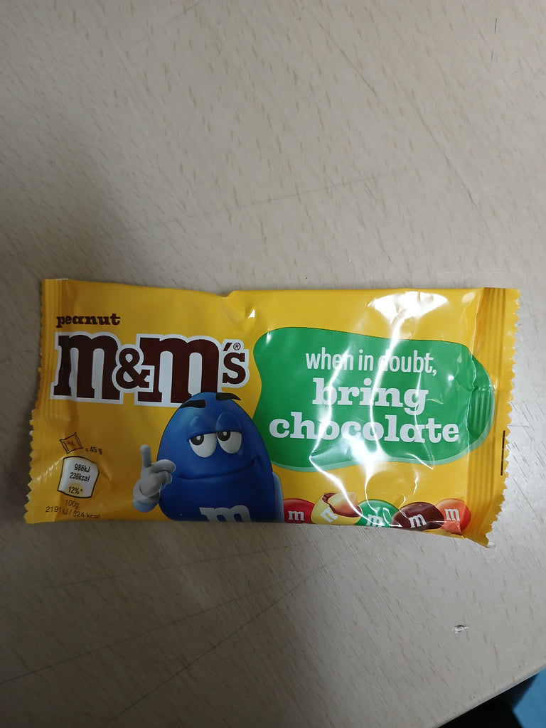 Colourful milk chocolate covered peanuts in a crisp sugar shell. Melts in your mouth, not in your hand."