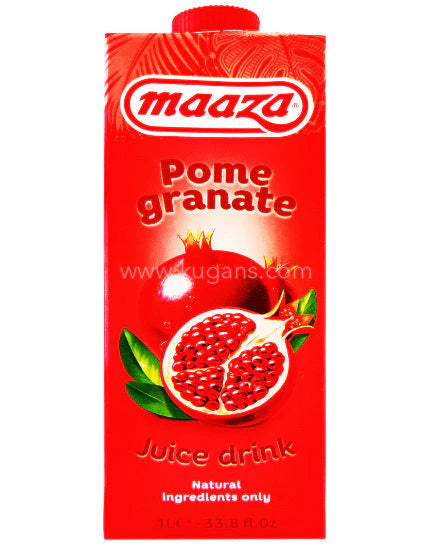 This 1-litre bottle of Maaza Pomegranate Drink is a refreshing beverage made from ripe, juicy pomegranates. With its naturally tangy-sweet flavor and vibrant red color, it’s perfect for quenching thirst, enjoying with meals, or serving at gatherings. Best served chilled, it delivers the rich and refreshing taste of pomegranate in every sip.