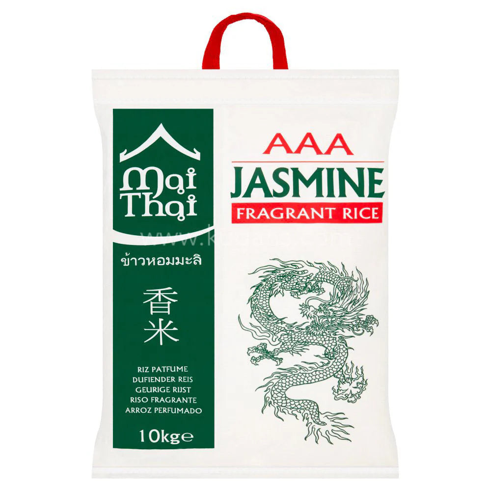 This 10 kg pack of Mai Thai AAA Jasmine Rice features long, fragrant grains that cook to a soft and fluffy texture. Ideal for Asian dishes, curries, and stir-fries, it brings authentic aroma and taste to every meal. Gluten-free and non-GMO.