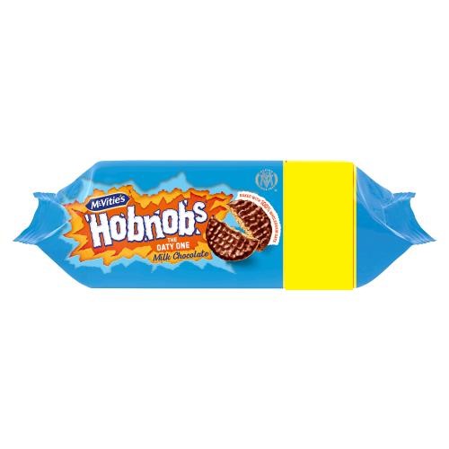 MCVITIES HOBNOBS MILK CHOCO are a popular biscuit snack that combines the crunchy texture of oat biscuits with the sweetness of milk chocolate. Each biscuit is made from a blend of wholegrain oats and wheat flour, which gives it a hearty and wholesome flavor.