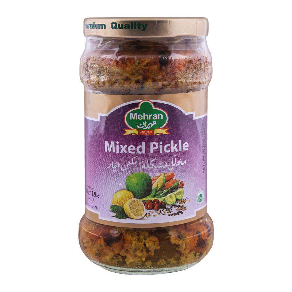 This 400 g jar of Mehran Mixed Pickle is a flavorful South Asian condiment made from a blend of fresh vegetables and fruits, carefully spiced and preserved in mustard oil. Known for its tangy, spicy, and savory taste, it enhances the flavor of rice, curries, breads, and snacks. A versatile addition to any meal, it delivers authentic regional taste in every bite.